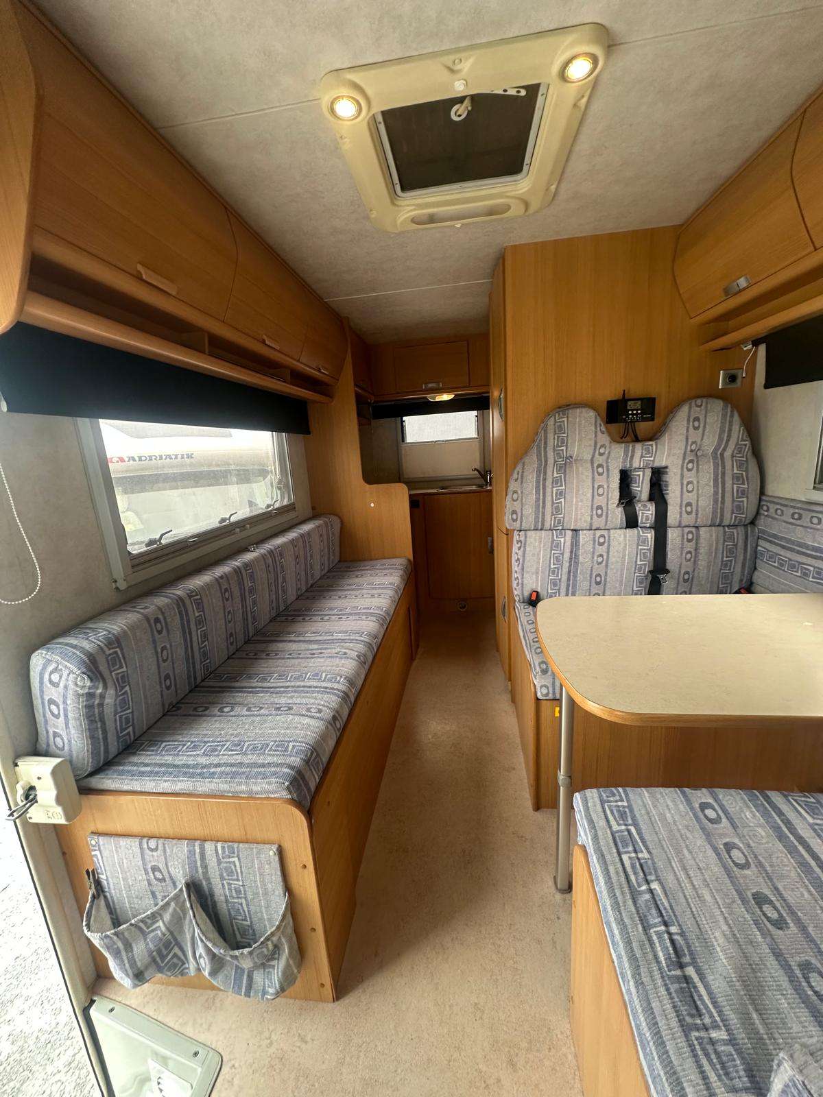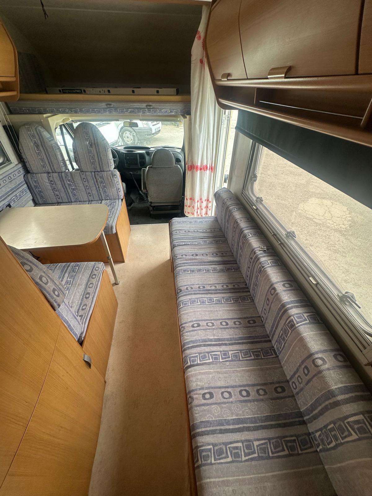 DISPONE: ,cierres segurida fiama ,ruedas especial camper, radio cd , depósito de agua limpia de 120 litros, 1 placa solar de 200 watios,antena tdt omnidireccional,television, doble batería, calefacción y agua caliente truma, mosquiteras y oscurecedores en ventanas y claraboya , compartimento para 2 botellas de gas,portabicicletas para 2 bicicletas,escalera trasera,etc etc.