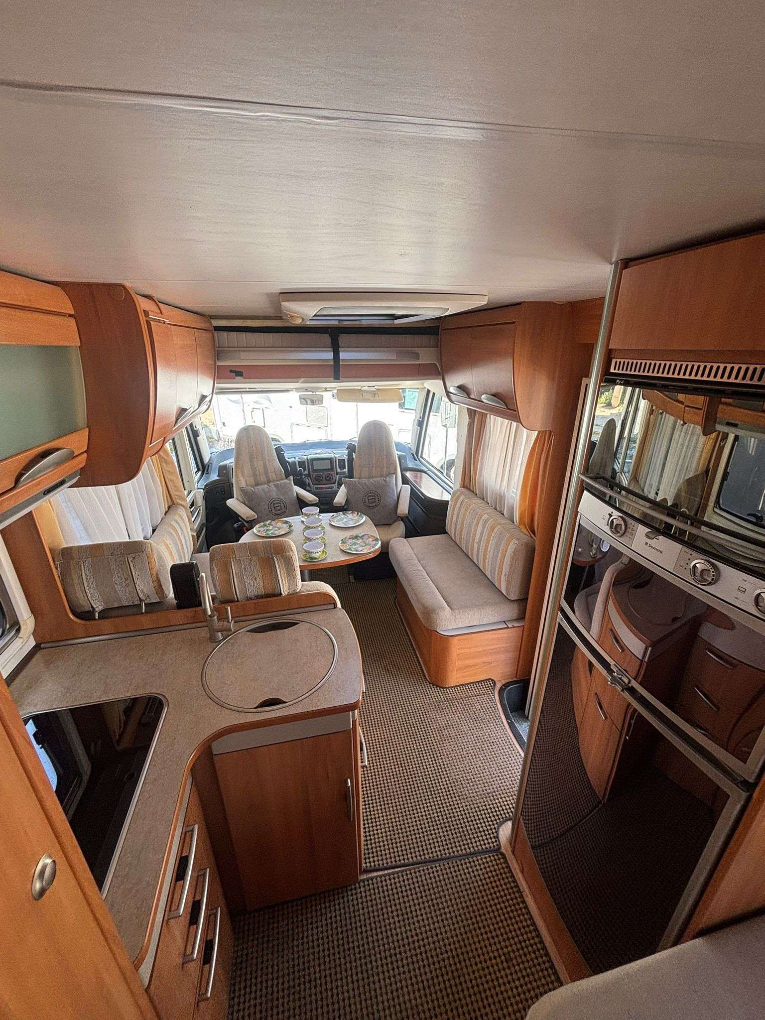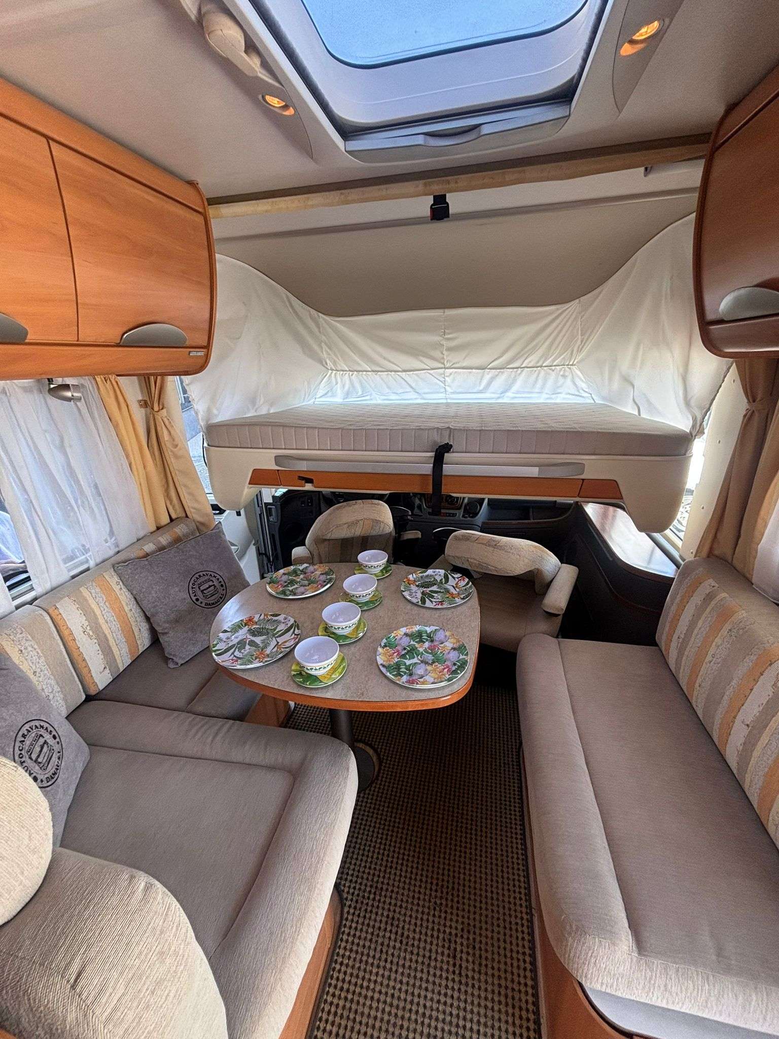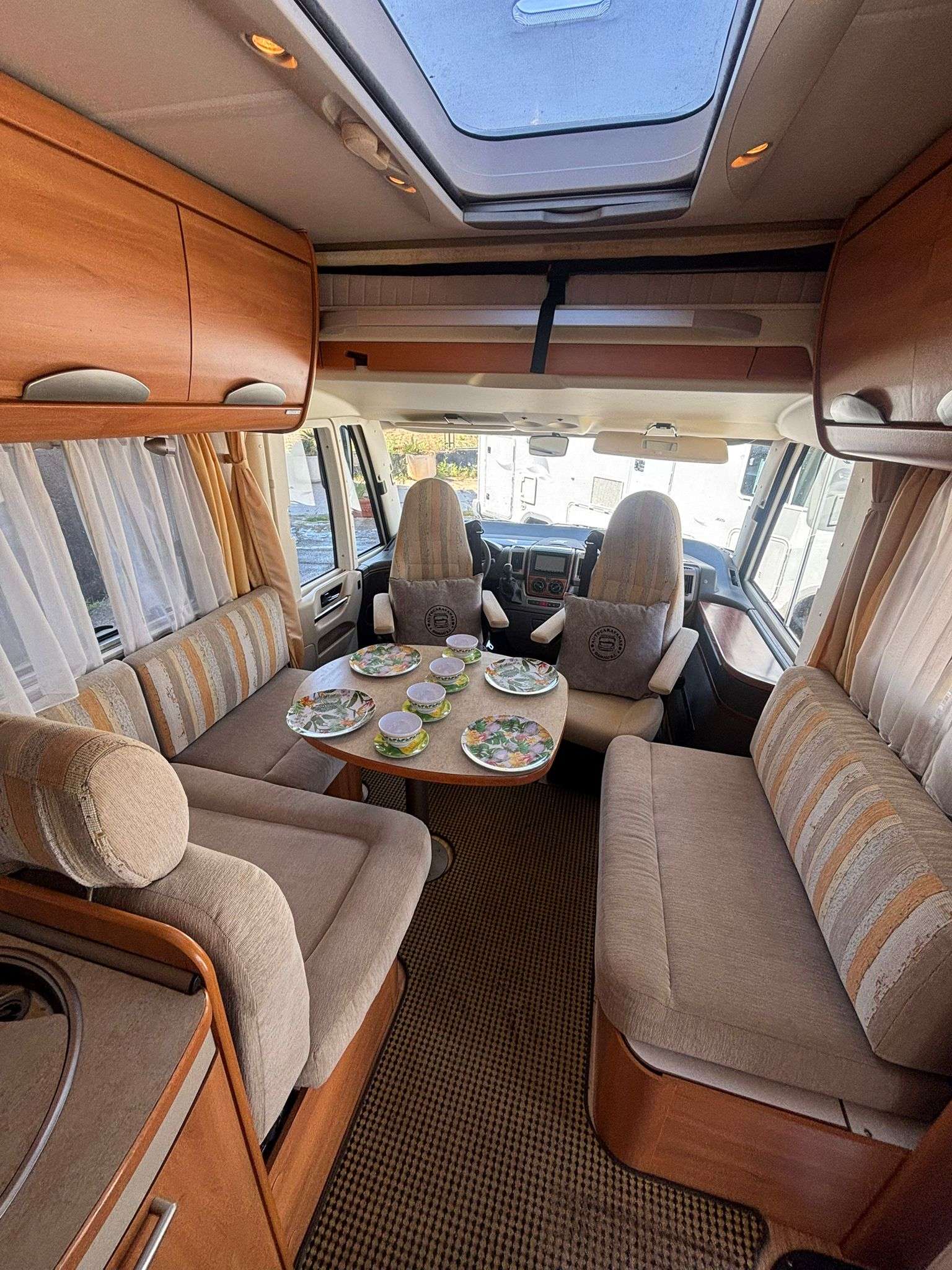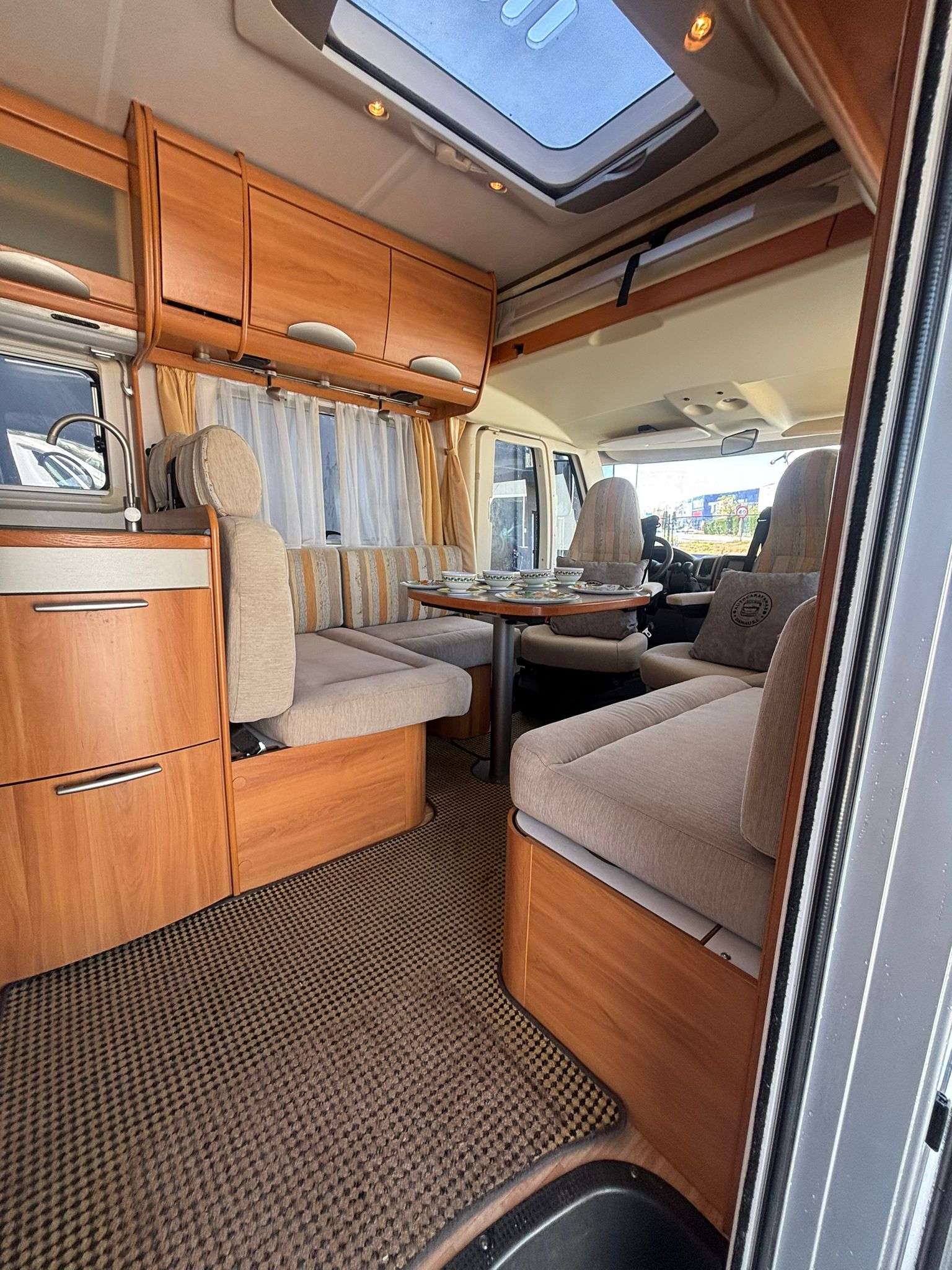 DISPONE: aire acondicionado(motor) ,radio pantalla , control de velocidad crucero, elevalunas eléctrico , airbags, abs, iluminacion interior ,television,remis completos delanteros,mesa del salon pivotante ,depósito agua limpia de 130 litros ,placa solar de 130 watios, doble batería , toldo exterior de 450 cm omnistore ,antena tdt omnidireccional, television ,calefacción y agua caliente truma ,camara de marcha atras,mosquitera y oscurecedores en ventanas y claraboyas,doble compartimentó para dos botellas de gas , escalon lateral electrico , mosquitera en puerta principal, remis delanteros completos, patas estabilizadoras, portabicicltas trasero para 3 bicicletas etc etc