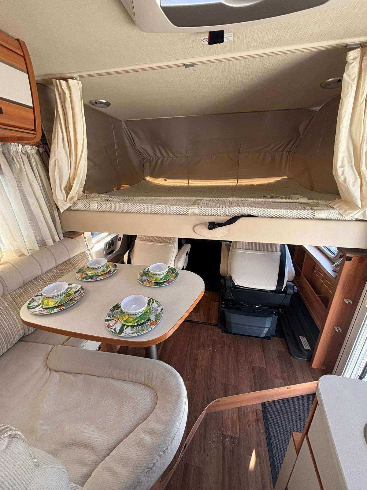 TIPOS DE CAMA: 2 camas gemelas traseras (190 cm por 190cm) o convertible en cama transversal 190 cm por 200 cm, 1 cama delantera suspedida encima de los asientos delanteros (150 cm por 190 cm) /