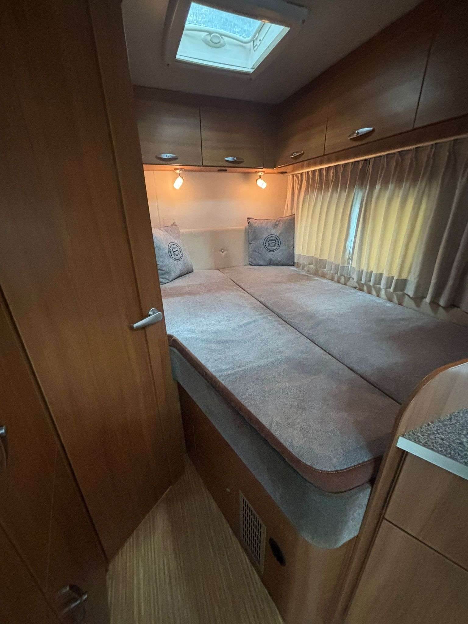 TIPOS DE CAMA: 1 cama francesa trasera  (190 cm por 135cm) , 1 cama delantera suspedida encima de los asientos delanteros (150 cm por 190 cm) /