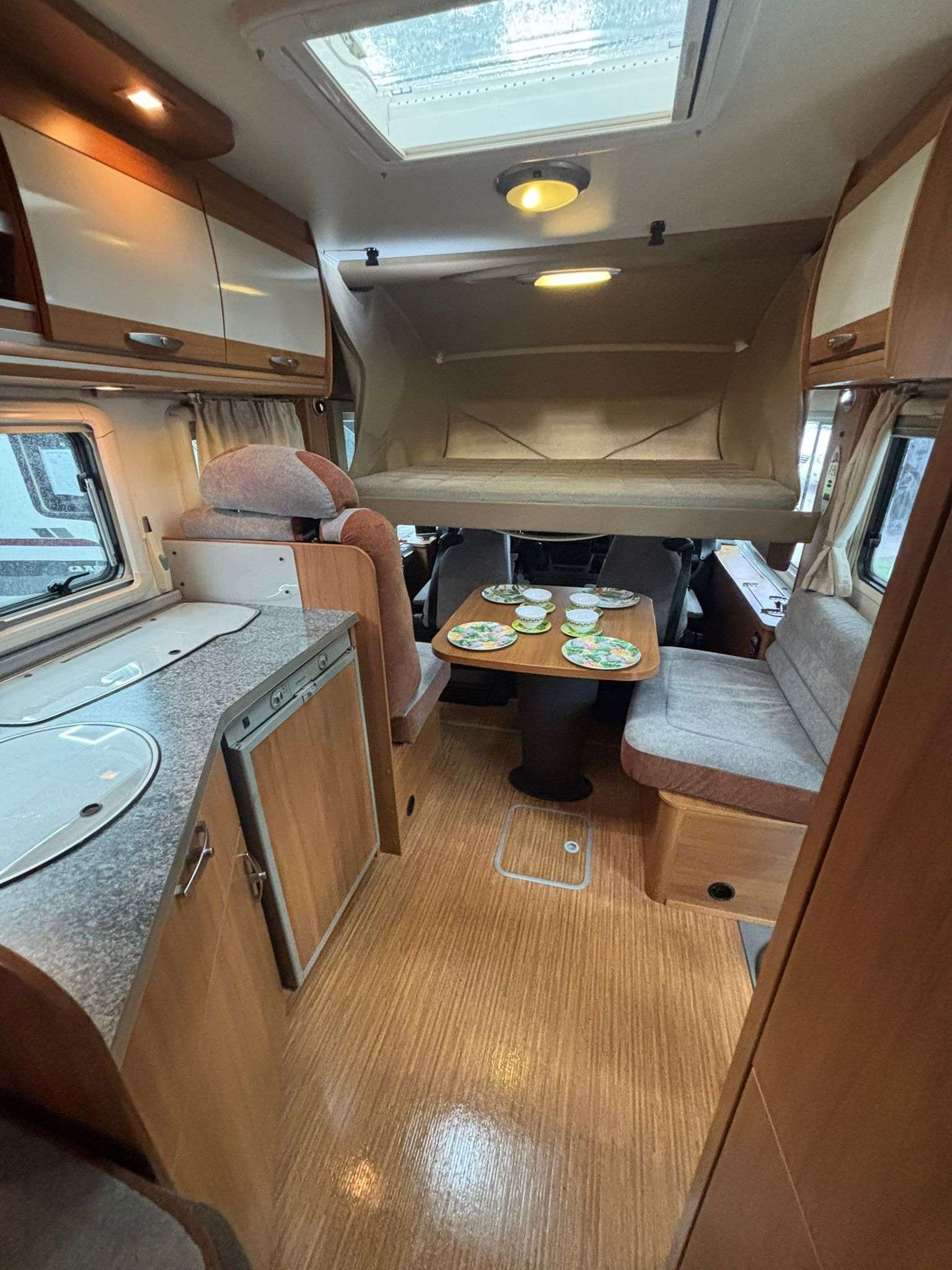 DISPONE: aire acondicionado(motor) ,radio pantalla carplay, elevalunas eléctrico , airbags,  abs,  iluminacion interior   ,television,remis completos delanteros,mesa del salon pivotante ,depósito agua limpia de 130 litros ,placa solar de 130 watios, doble batería , toldo exterior de 450 cm omnistore marca thule,antena tdt omnidireccional, television ,calefacción y agua caliente truma   ,camara de marcha atras,mosquitera y oscurecedores en ventanas y claraboyas,doble compartimentó para dos  botellas de gas , cierres de segurirdad fianma, escalon lateral electrico , mosquitera en puerta principal, remis delanteros completos,etc etc