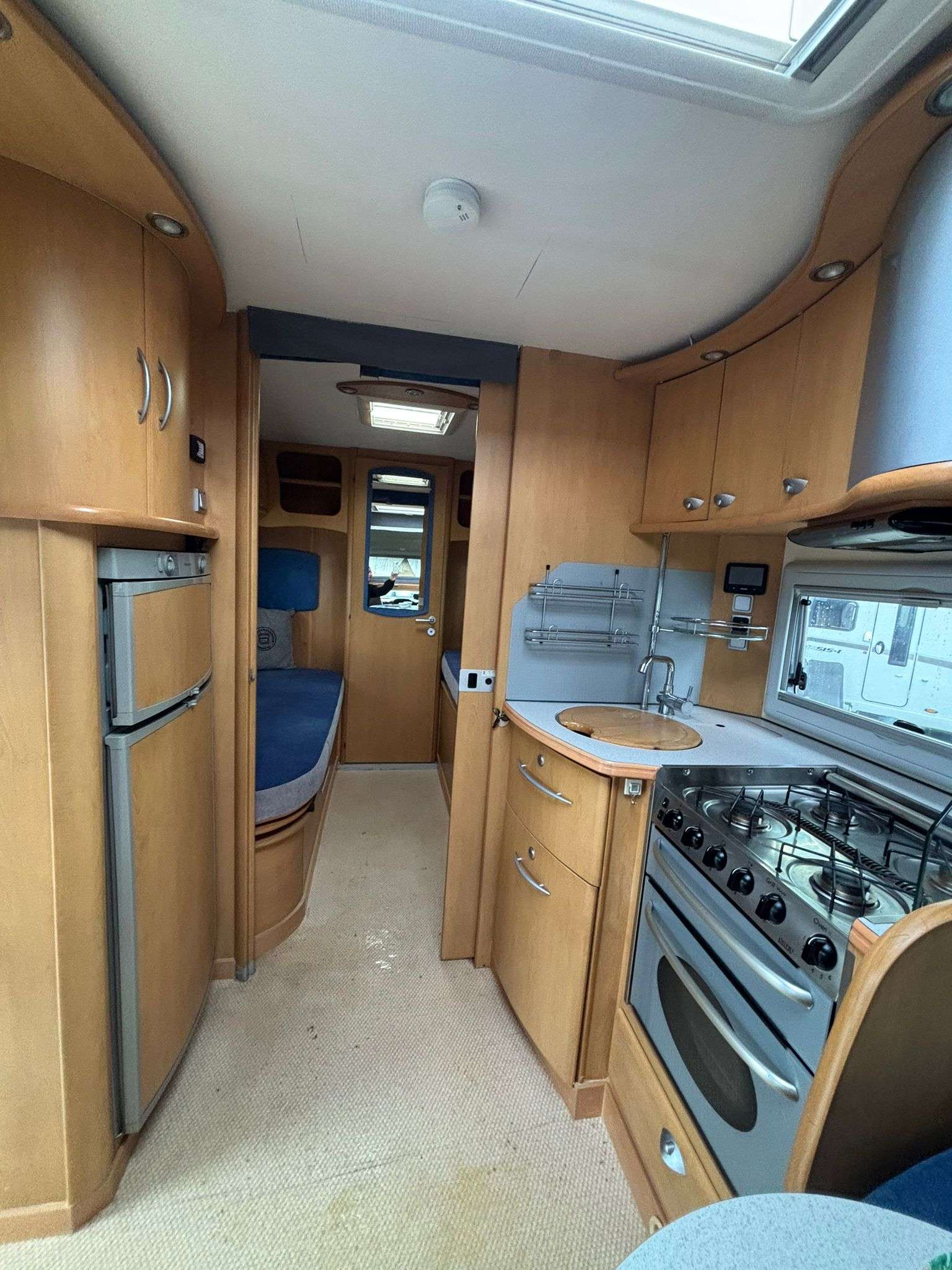 COCINA EQUIPADA: frigorífico grande trivalente 12v-gas-220 v, hornilla 4 fuegos,horno a gas, fregadero.