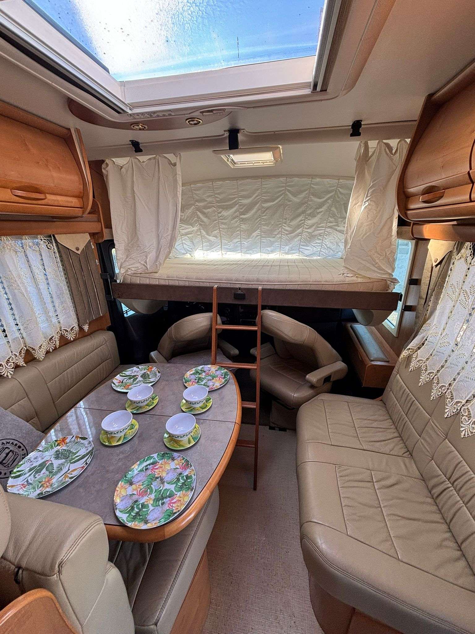 DISPONE: aire acondicionado(motor) ,radio cd, elevalunas eléctrico , airbags, abs, ruedas especial camper ,iluminacion interior ,television,antena,remis completos delanteros,mesa del salon pivotante ,depósito agua limpia de 130 litros ,gran salon enfrentado,placa solar de 150 watios, doble batería , toldo exterior de 450 cm omnistore,antena tdt omnidireccional, television ,calefacción y agua caliente truma ,mosquitera en puerta principal,camara de marcha atras,mosquitera y oscurecedores en ventanas y claraboyas,cierre seguridad fiamma en doble compartimentó para dos botellas de gas ,etc etc