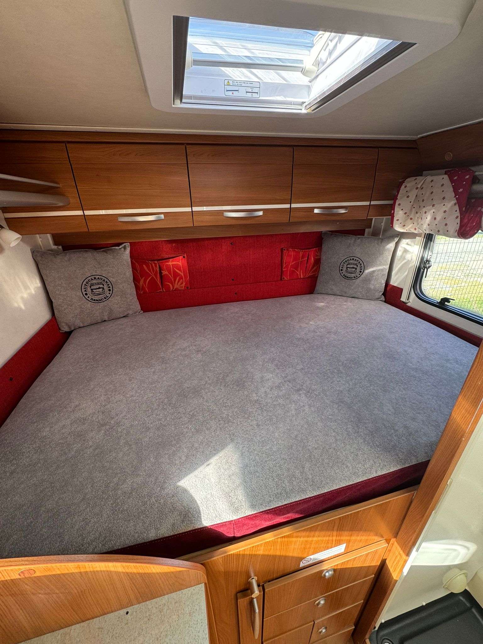TIPOS DE CAMA: 1 cama que se hacen bajando la mesa del salón ( 120 cm x 190 cm ) .1 cama trasera transversal (190cm por 135 cm)